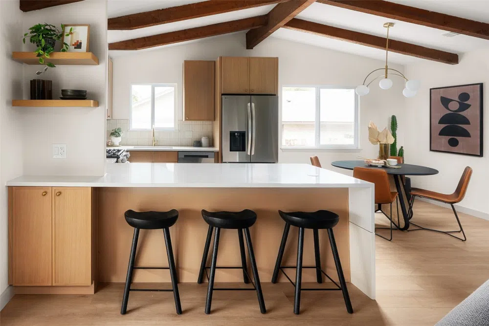 Modern natural high-end remodel in Quail Creek neighborhood just minutes from the Domain, Q2 Stadium, and Quail Creek Park. This 3 bedroom, 2 bathroom + flex space features new slim-shaker white oak cabinets throughout with soft close feature, beautiful quartz countertops, and new floors. With a new 30 year architectural roof, new double-pane windows, new HVAC stem, new blown-in attic insulation and fresh landscaping you will admire this new home inside and out. As you step into the home you are greeted by a storage/bench area that leads into the living space where you will find a lime-wash accented fireplace that overlooks the open concept layout to the kitchen and dining area. Off the living space, you will find a spacious covered patio overlooking the large backyard. The redesigned kitchen area includes new stainless-steel appliances, striking backsplash, and plenty of counter space and cabinets. Inside the primary suite you will find a spacious bedroom that leads you to the primary bathroom with a walk-in closet, gorgeous terrazzo flooring, and a walk-in shower featuring a rain showerhead. Off of the primary suite you will find a flex space that’s perfect for an office or workout area, which includes access to the back patio. The 2 guest bedrooms sit across the primary suite and share a bathroom that is sure to be a standout for guests. From the 2-car garage you will enter the home to find a new indoor laundry space and additional pantry area. This is a one of a kind home that could be yours! Agent / Owner